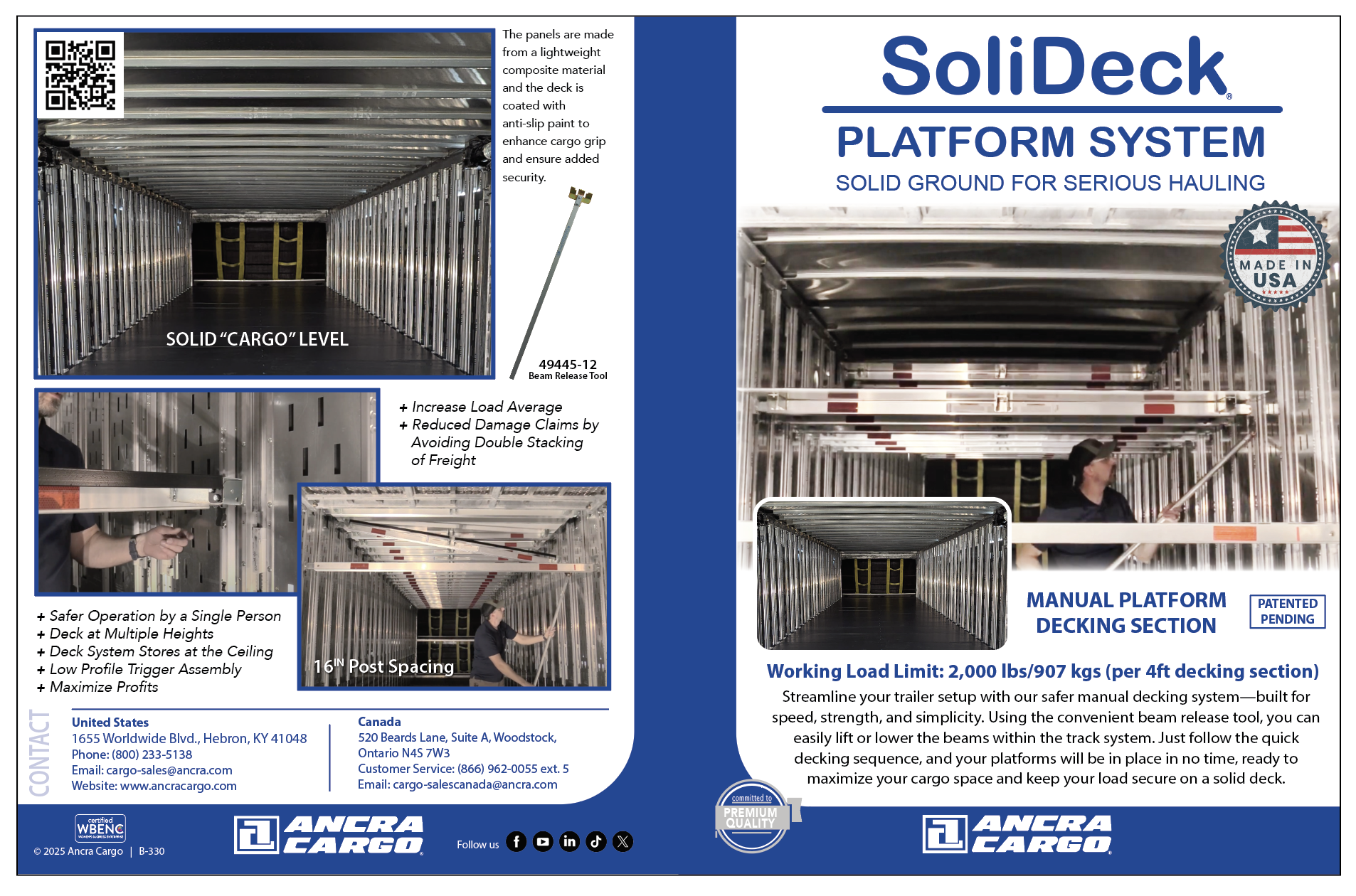 Streamline your trailer setup with our safer manual decking system—built for speed, strength, and simplicity. Using the convenient beam release tool, you can easily lift or lower the beams within the track system. Just follow the quick decking sequence, and your platforms will be in place in no time, ready to maximize your cargo space and keep your load secure on a solid deck.
